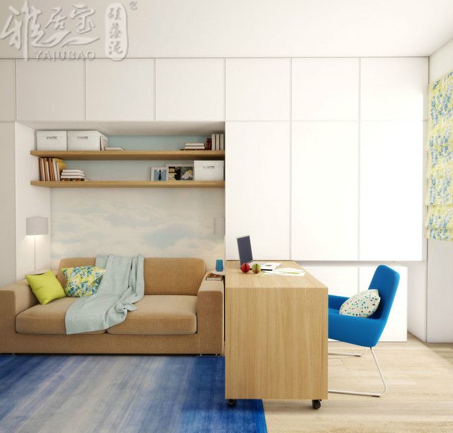小户型意味着什么?狭窄?压抑?妥协?都不是。小户型不是放弃梦想家居的代名词,小户型也可以很空灵、通透、淡雅。利用冷色调,大落地窗,互借空间等手法,将这个狭小的空间打造成一个