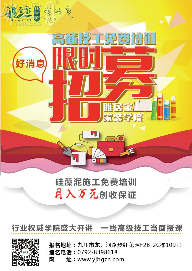 为了全面提升业内施工水平,高效挖掘硅藻泥施工优秀人才,为广大消费者营造更加优质的家装环境,雅居宝硅藻泥九江加盟店全面启动首次线下硅藻泥施工免费培训活动,并计划于9月2